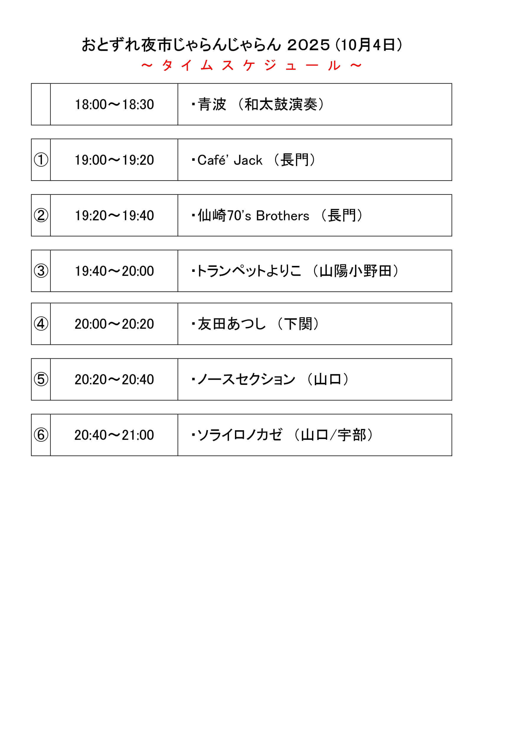 10月4日に今年最後の「おとずれ夜市じゃらんじゃらん」を開催いたします。